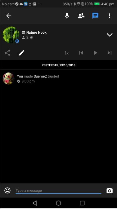 채널 소유자가 문자 메시지, 이미지 및 위치 공유를 활성화한 경우 기록/대화 화면에서 이러한 작업을 수행할 수 있습니다.