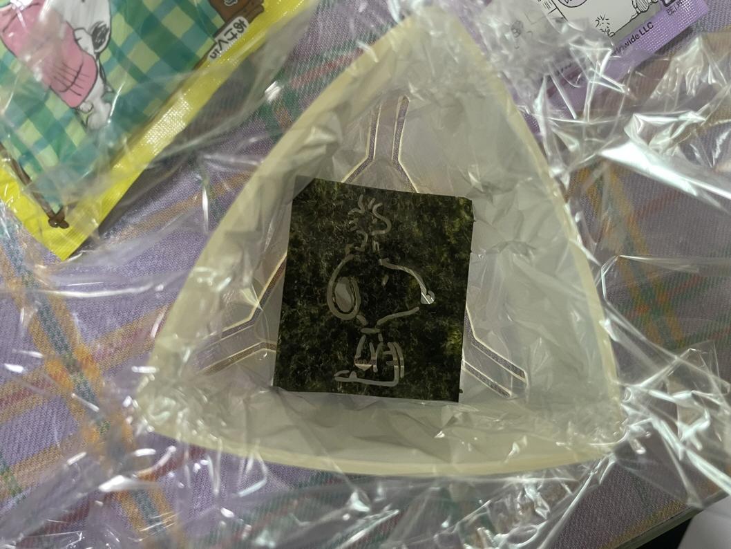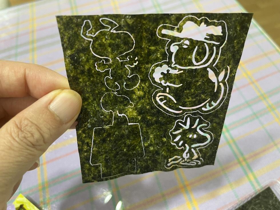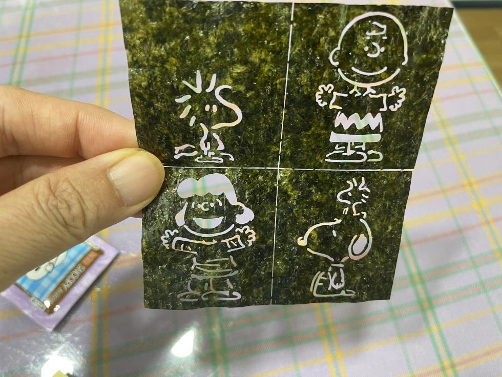 야끼노리(구운김)인데요. 김에 스누피 캐릭터 모양으로 잘라져 있어요.