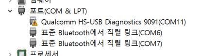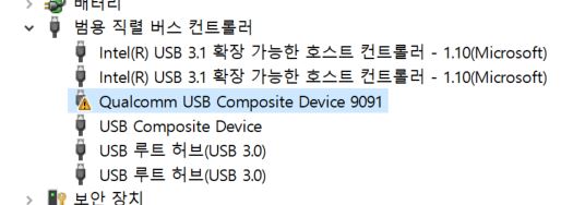 장치관리자에서 범용직렬버스 컨트롤러에 Qualcomm USB Composite Device 9091이 확인 됩니다.