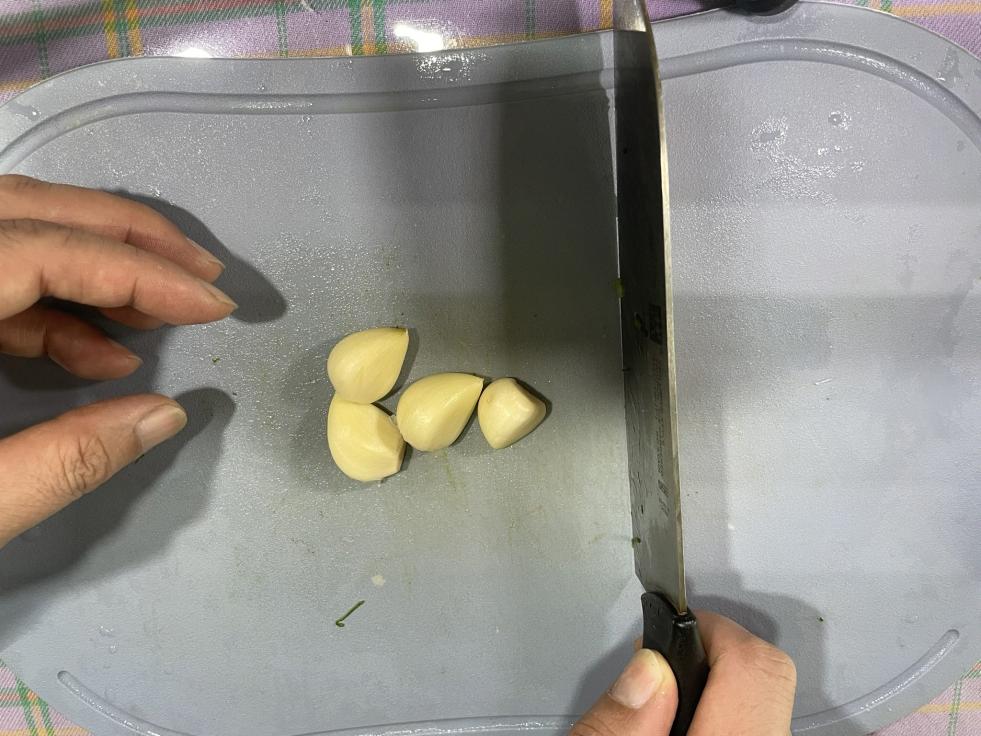 2. 마늘4개 정도 다져서 넣어요.