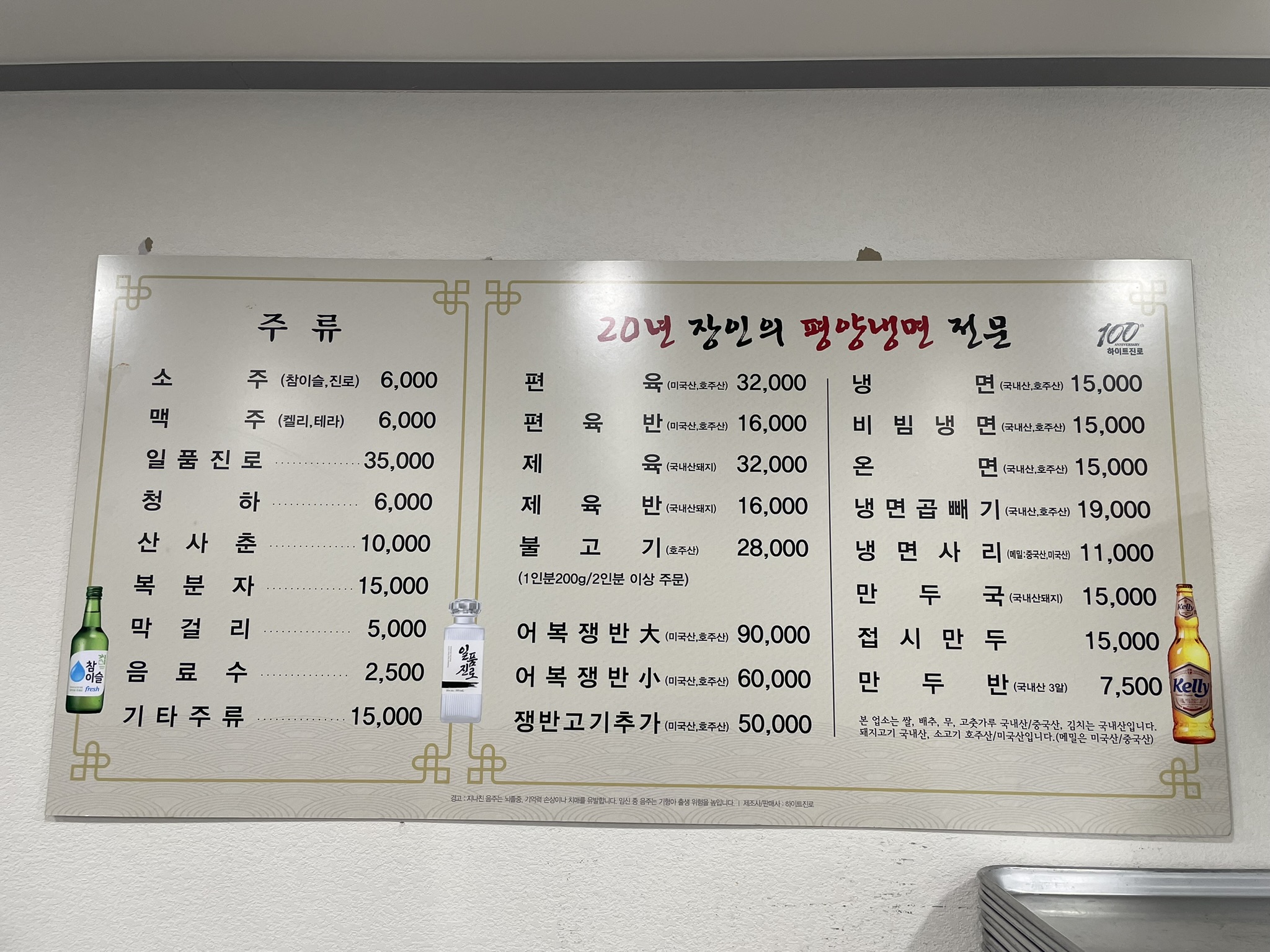 이 집의 주메뉴는 평양냉면과 제육, 어복쟁반입니다. 김치는 국내산이네요. 마음에 들어요.