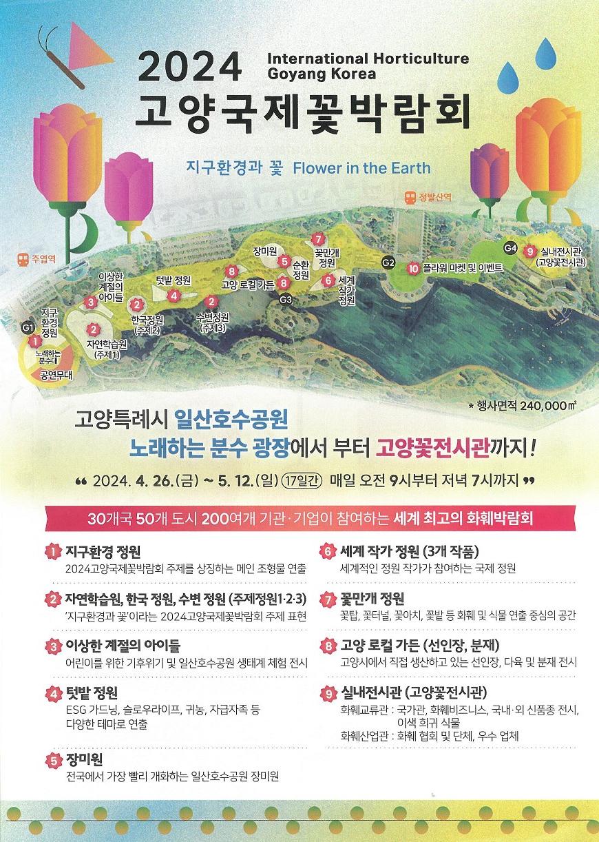 올해도 고양시 일산의 명소인 호수공원에서는 국제 꽃박람회가 화려하게 개최됩니다.