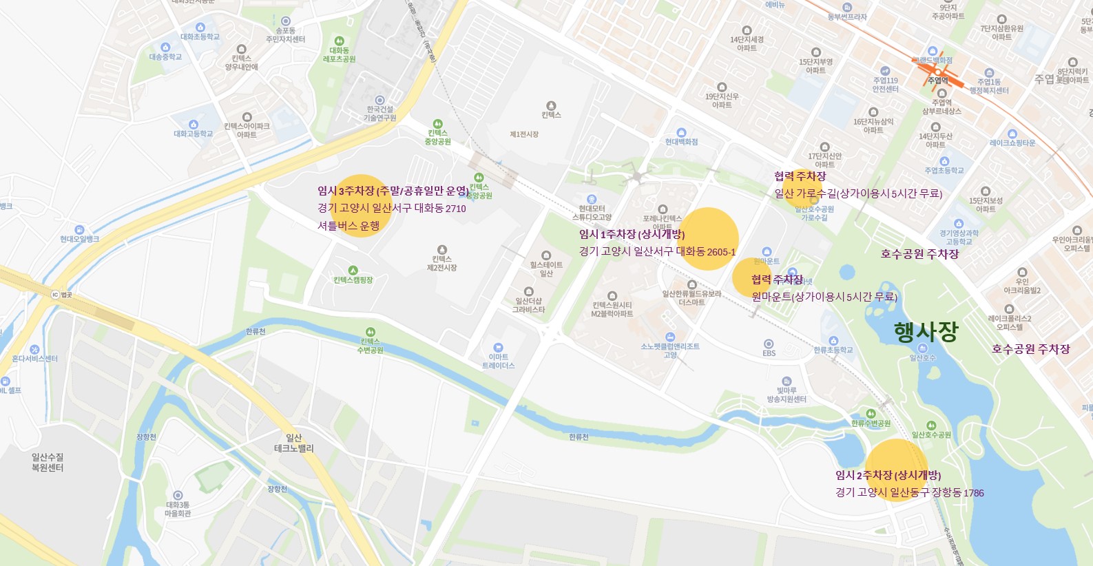 3주차장(주말/공휴일만 운영, 셔틀버스 이동): 경기 고양시 일산서구 대화동 2710