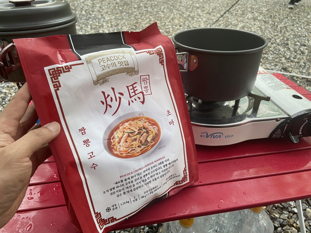 저희가 준비한 요리는 첫날 점심으로 이마트에서 구매한 ‘피코크 초마 짬뽕’ 첫날 점심이니까 간단하게 준비할 수 있는 밀키트입니다. 국물도 얼려 있어서 모두 냄비에 넣고 끓이기만 하면 돼요.