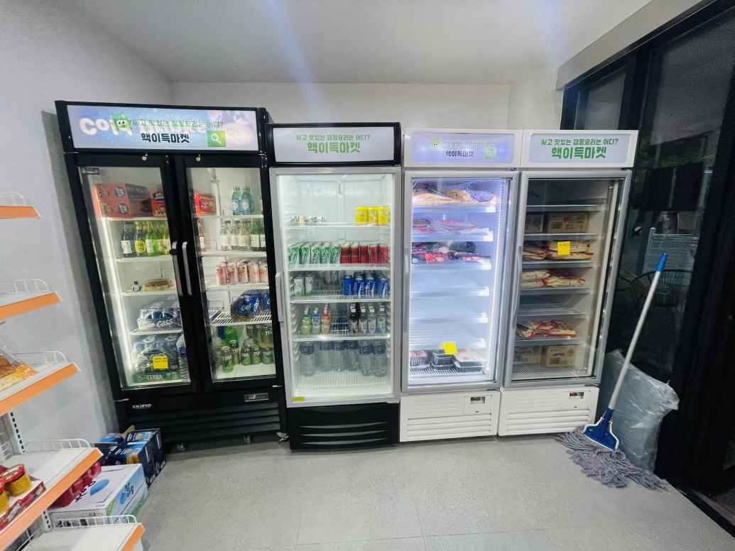 매점은 무인으로 운영되는 키오스크입니다. 밤늦게까지 물품을 구매할 수 있어요. 한 가지 아쉬운 건 키오스크 항목에 사진등록이 많이 안 되어 있어서 구매 물건 찾기가 어려웠어요.