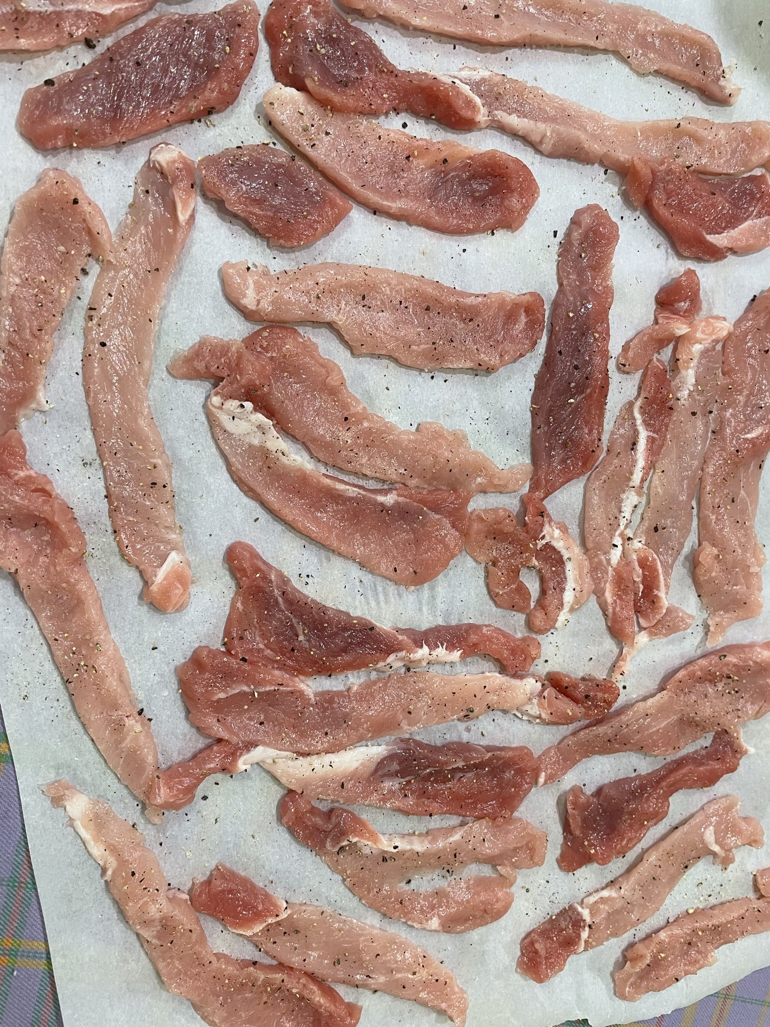 1. 돼지고기 생등심을 준비합니다. (저는 마트에 생등심이 없어서 탕수육용 고기로 했어요)