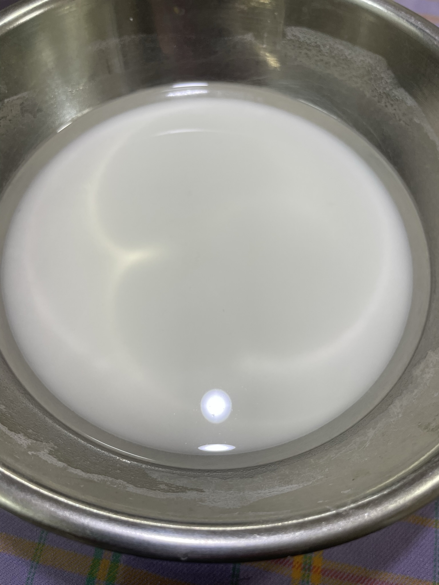 4. 잠시 후, 전분이 바닥에 가라앉고 물만 위로 올라옵니다,