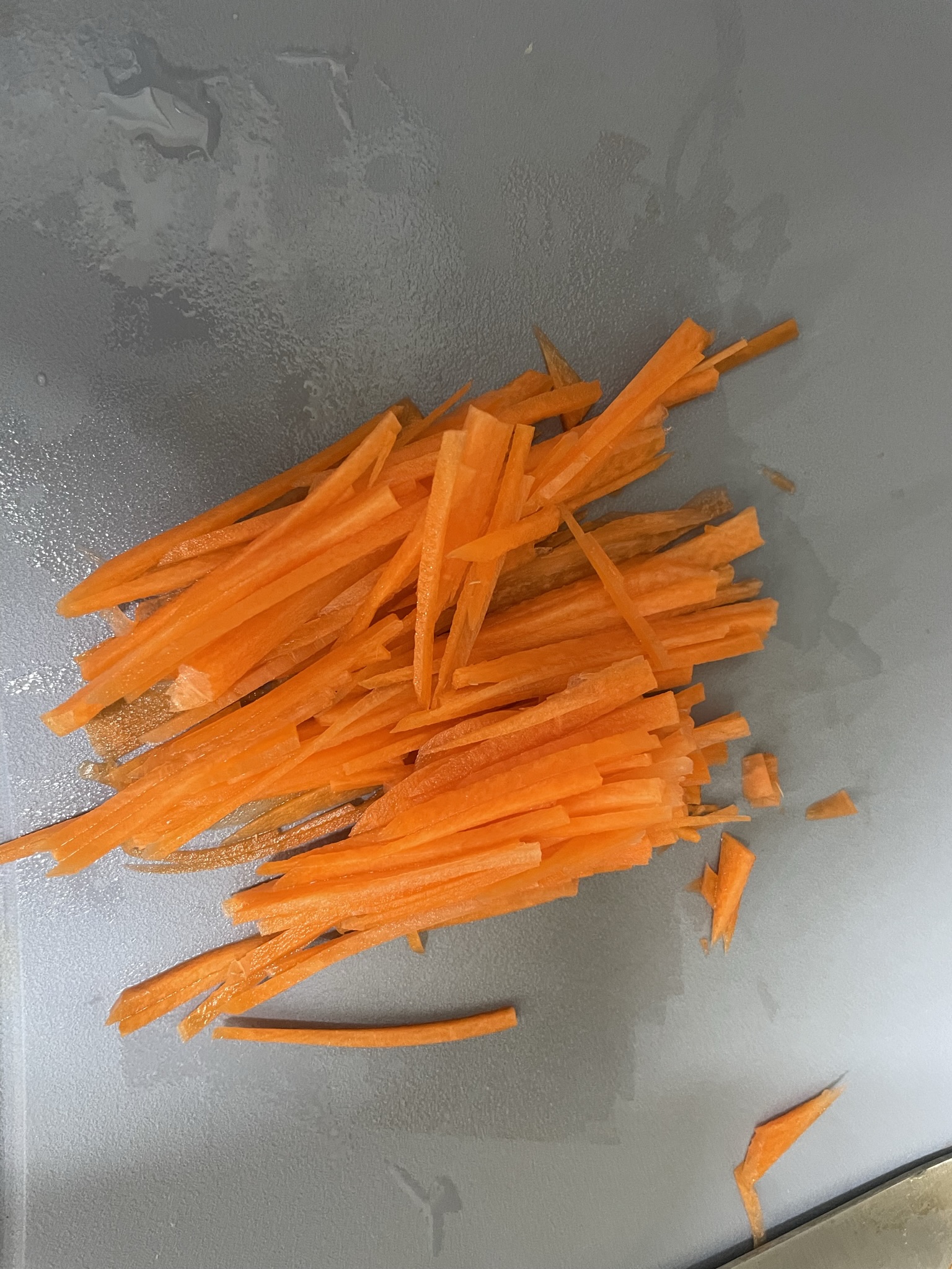 3. 다진 마늘 약간, 당근, 파, 생강을 얇게 썰어 소스와 함께 끓입니다