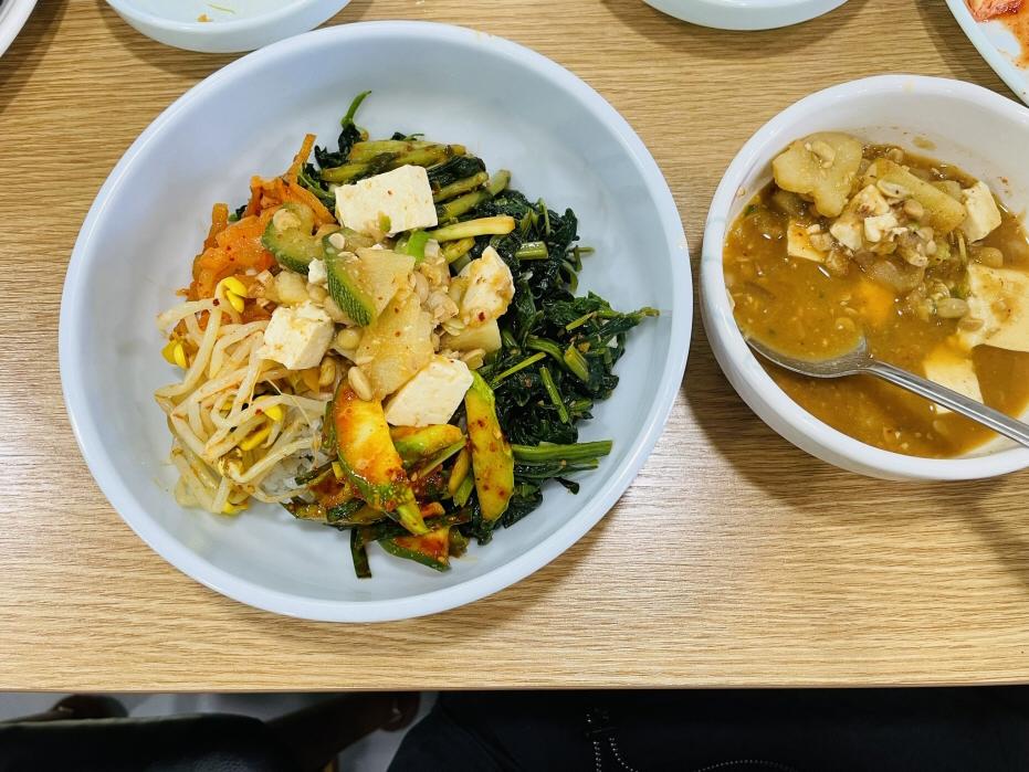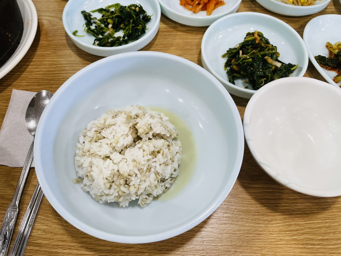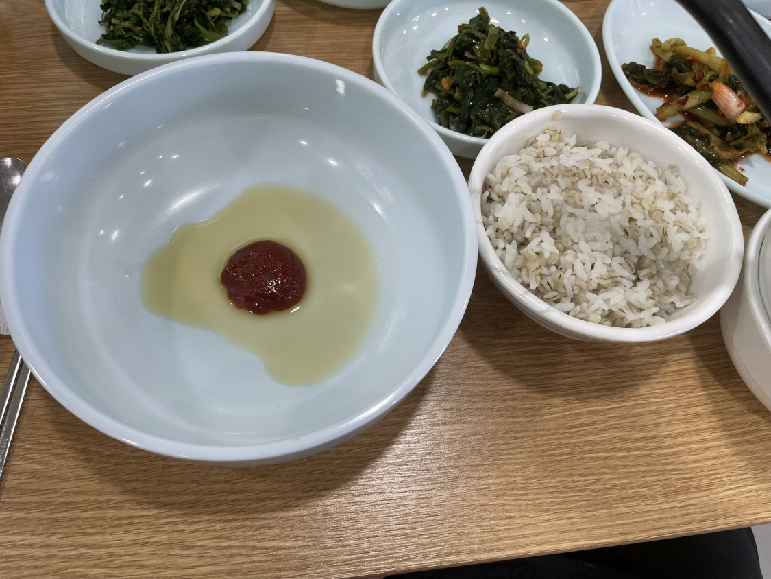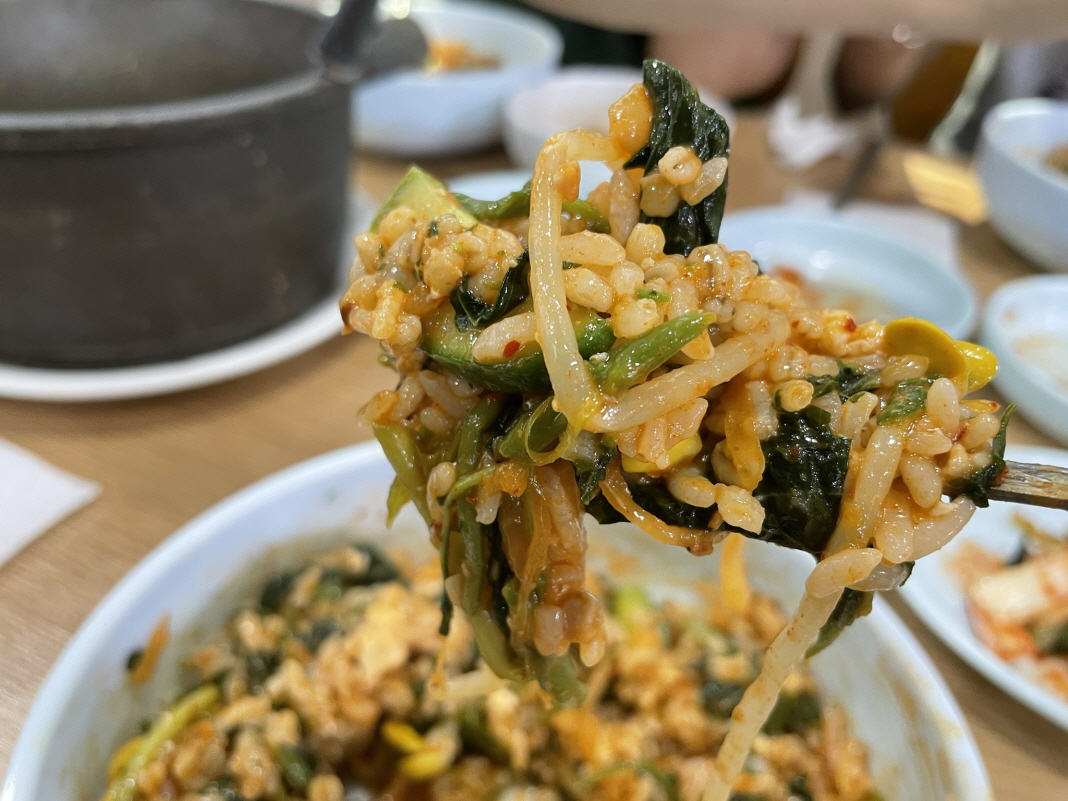 그냥 단순한 청국장과 나물 넣은 보리 비빔밥인데 이렇게 많은 사람이 좋아하고 맛있다는 게 대단합니다. 많은 사람이 인정하는 맛이에요.