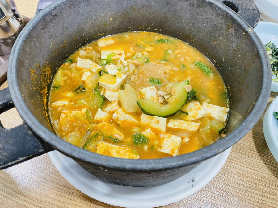 이집 맛의 비결은 집에서 만든 듯한 나물 맛과 많이 짜지 않고 구수한 청국장입니다. 어린이도 좋아해요.