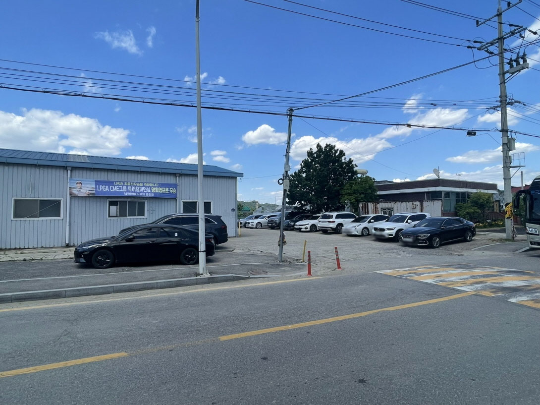 주차장은 길 건너에 충분한 공간이 있어요.
