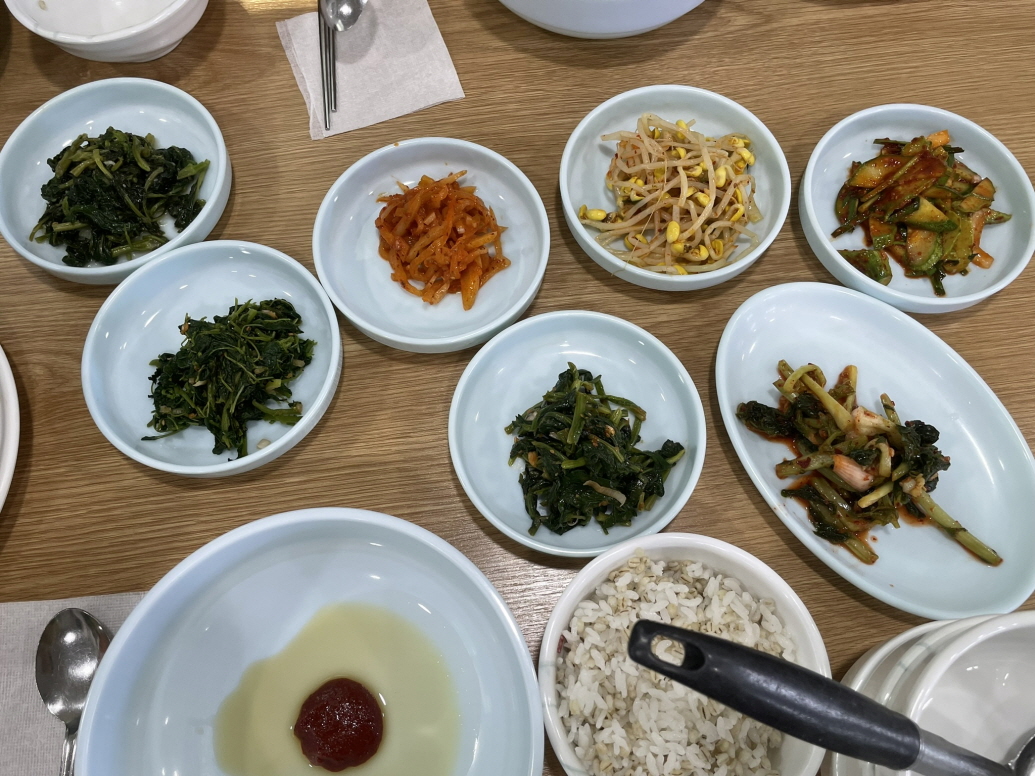 드디어 반찬이 나오고요. 반찬은 나물 종류만 7가지가 나와요. 나물이 모두 감칠맛 나고 맛있어요.