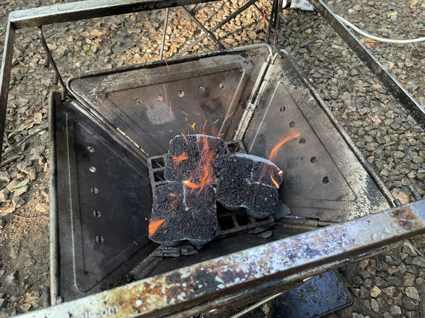 바로점화 숯에 불붙입니다.