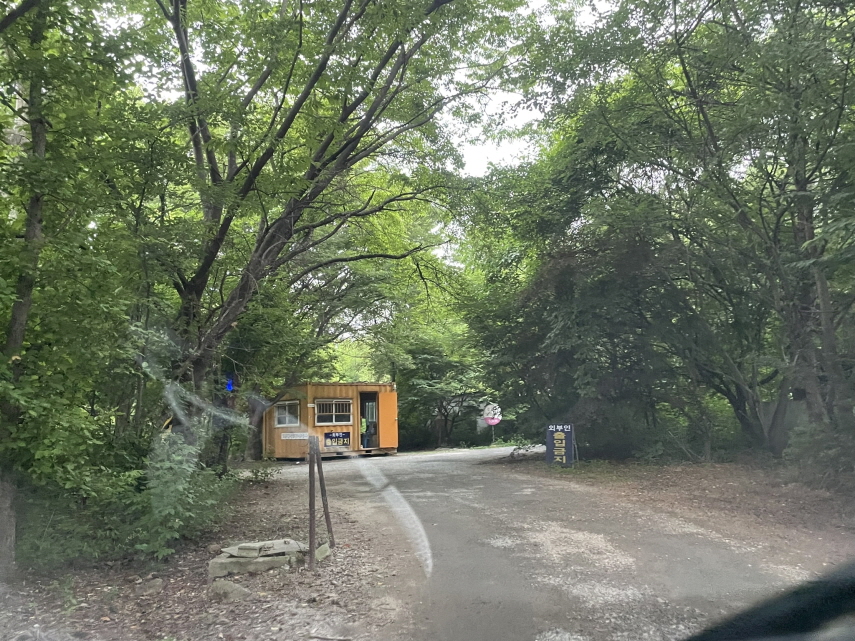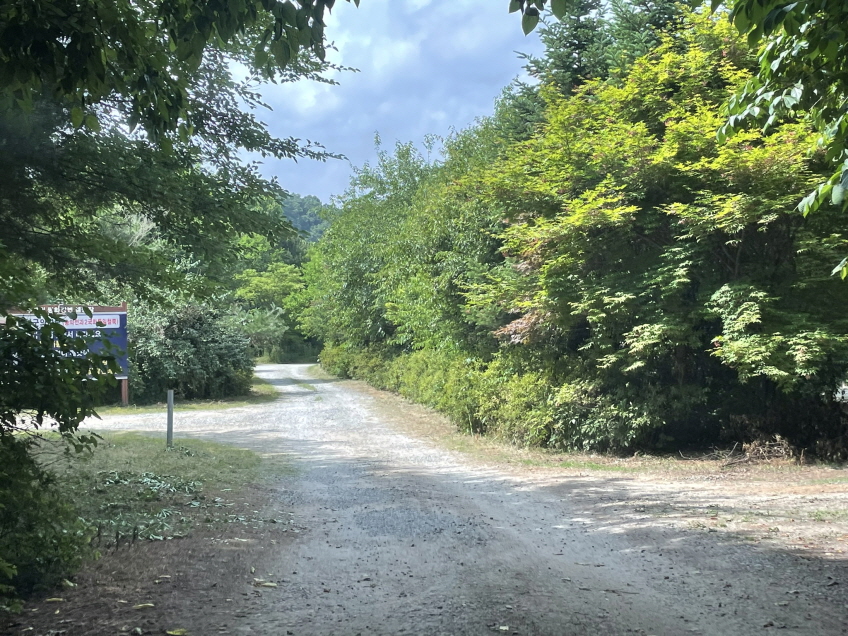 확인 후 안으로 들어갑니다. 숲길이 길게 이어져요. 캠핑장 표지판이 나오네요.