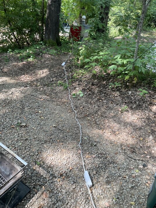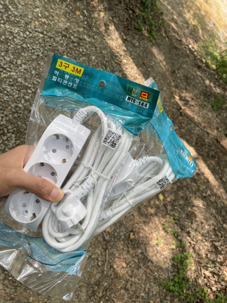 서둘러 준비하느라 집에서 리드선을 안 가져왔네요. 가까운 임진농협 마트에서 3미터짜리 멀티탭(1만 원씩) 사 와서 급한 대로 비닐로 물 안 들어가게 싸서 연결했습니다. 꼭 캠핑 오면 뭔가를 하나씩 빼먹어요. ^^;;