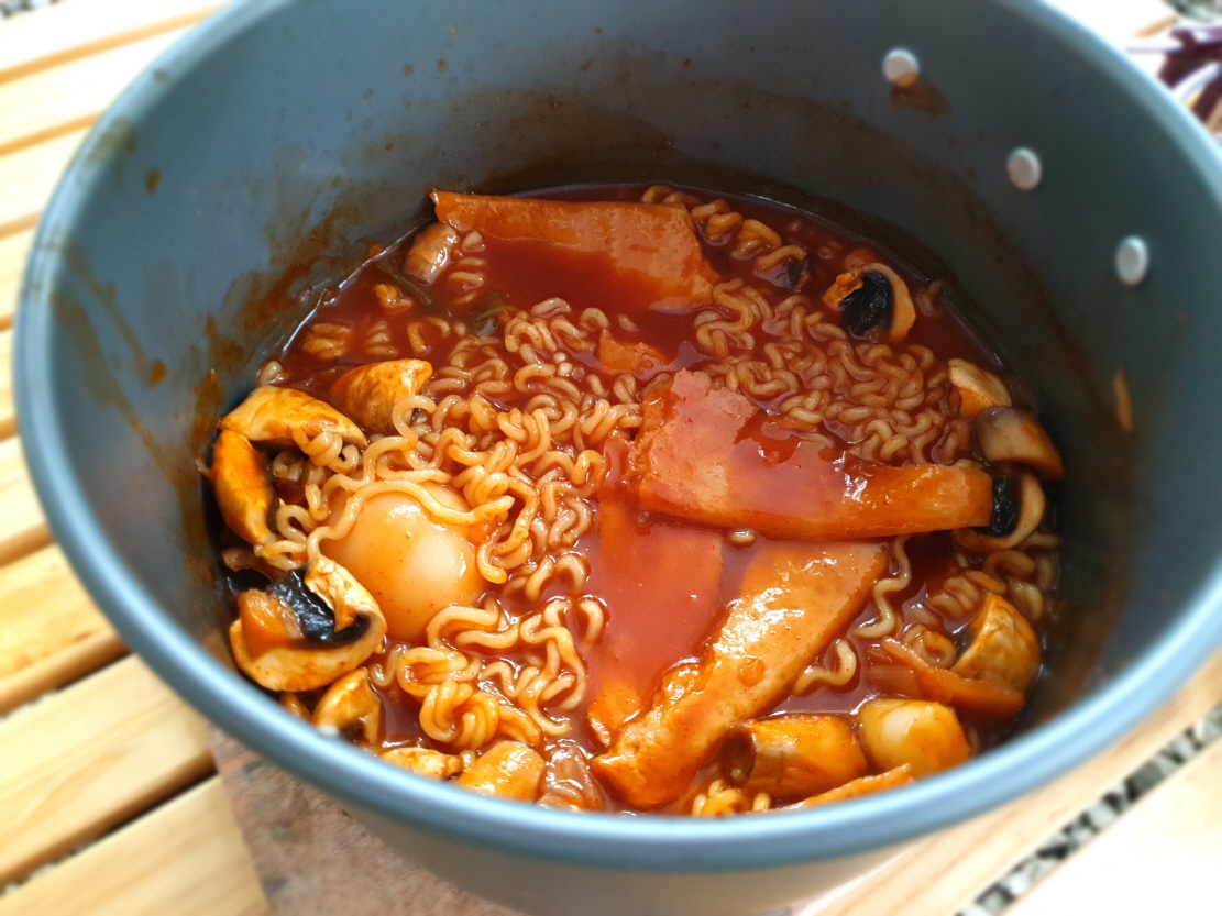 이마트에서 샀어요. 다 넣고 끓이기만 하면 돼요. 타프와 텐트를 치고 점심으로 간단하게 먹었습니다.