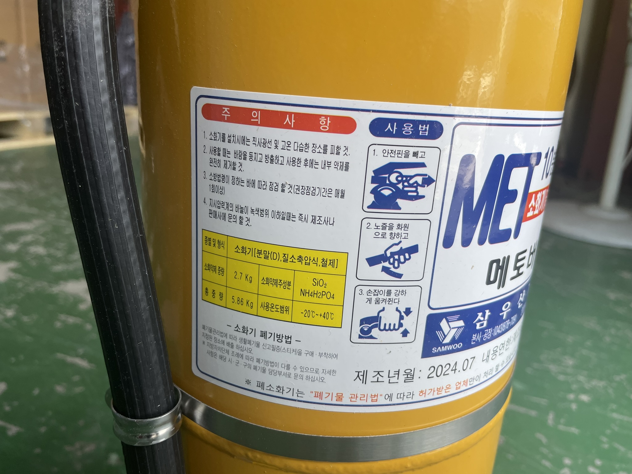 용도: B급 화재 및 C급 화재 (가스 화재: 프로판, 부탄 등) 진압에 사용.