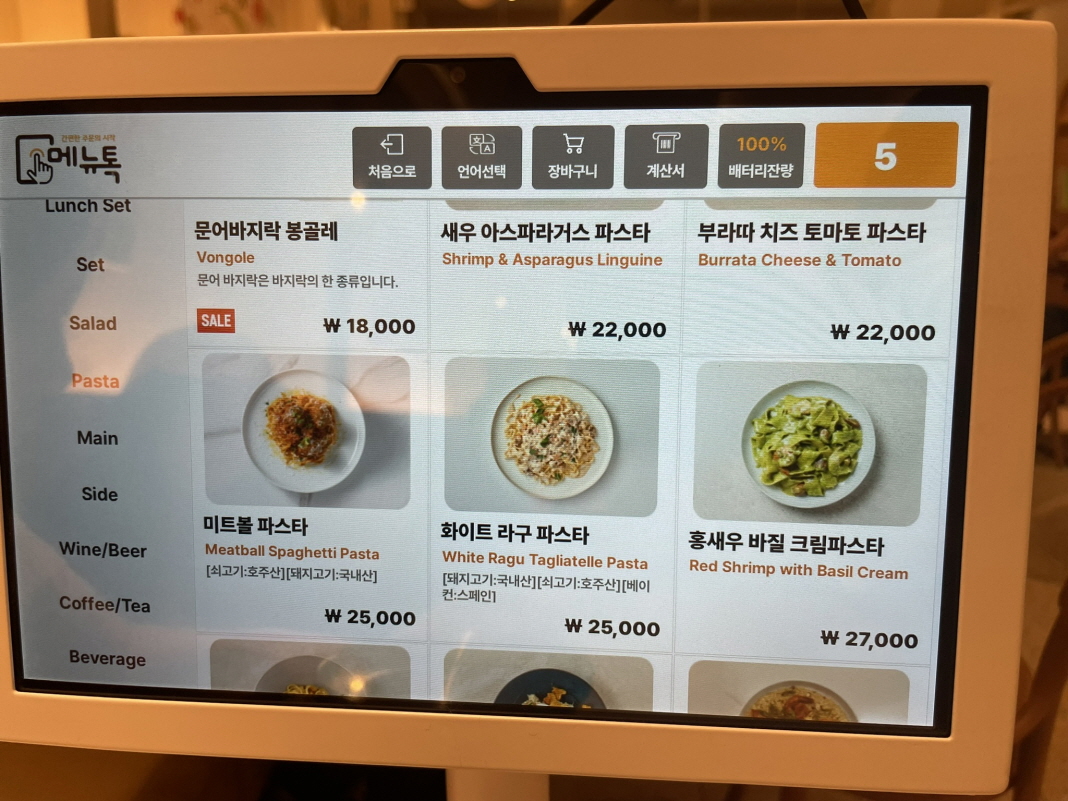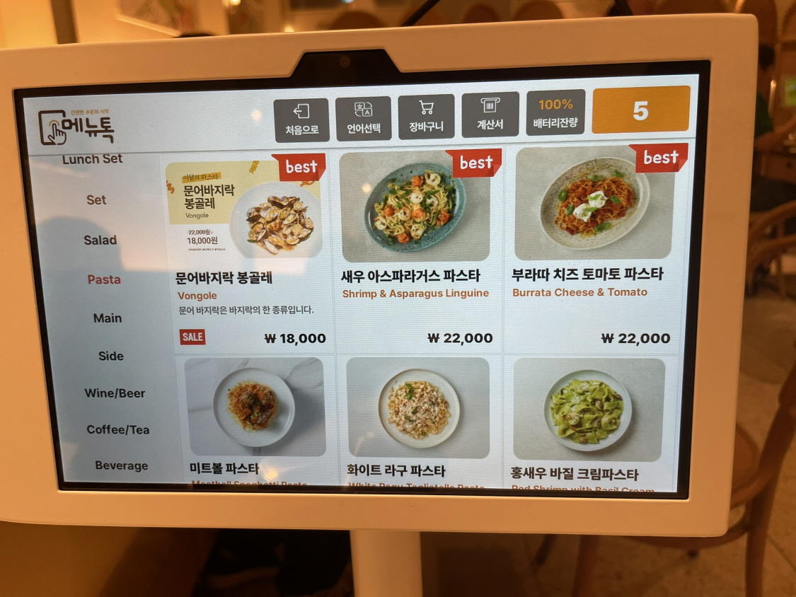 자리마다 있는 키오스크로 주문하는 방식이네요.
