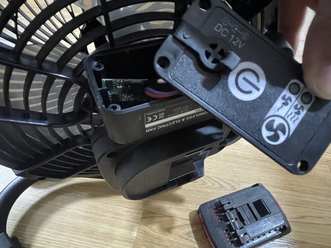 하이코 선풍기의 뒤쪽측면에 있는 제어박스를 열고요. 기존 모듈을 제거합니다.