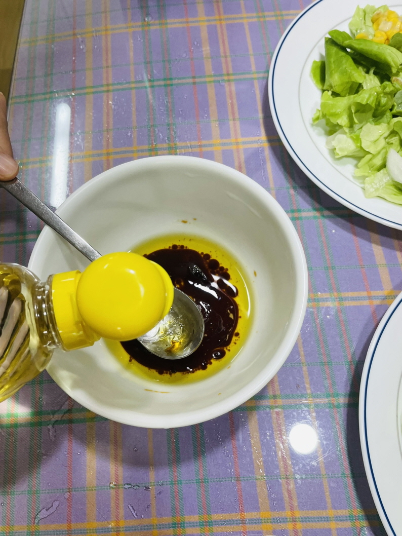 위 소스 재료들을 모두 섞어 드레싱 소스를 미리 만들어 둡니다.