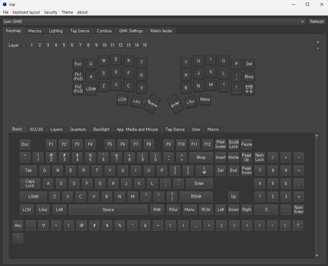 컴퓨터에 연결해서 사용하려면 키 매핑이 필요합니다. Vial이라는 소프트웨어를 사용하여 입력해 줍니다.