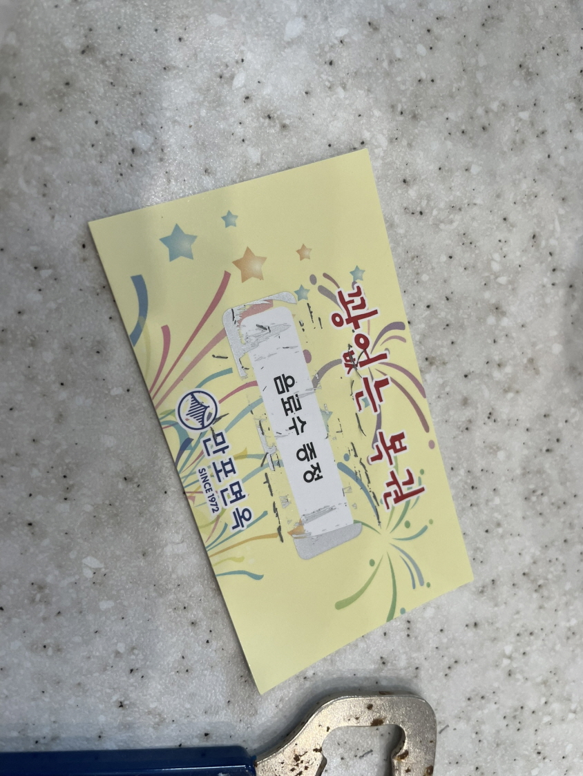 SNS이벤트가 있어요. 네이버 영수증 리뷰입니다. 영수증리뷰에 참여하려면 음식계산을 미리 해야 해요. 네이버에 영수증 리뷰 등록하고 카운터에 가져가면 많은 복권 중에 하나를 뽑으라고 합니다. 긁어봤는데 음료수가 당첨되었어요. 아마 대부분 음료수인 것 같아요.