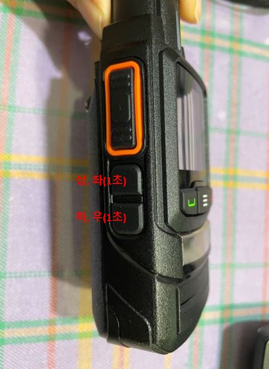 무전기에 버튼이 많지 않아서 좌우 버튼이 별도로 없습니다.