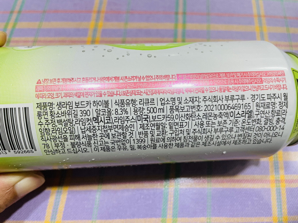 하이볼 안주로는 안주 없이 그냥 먹어도 괜찮고요. 마른안주와 치킨이나 마른안주와 같이 먹어도 좋을 것 같아요. 생라임은 알코올이 8.3%네요. 맥주보다는 조금 더 독하고 일반적인 와인보다는 순해요.