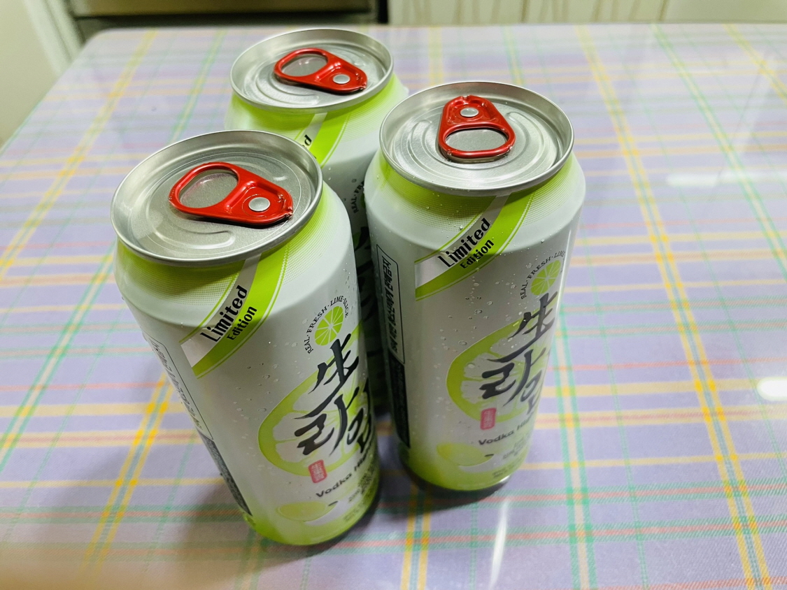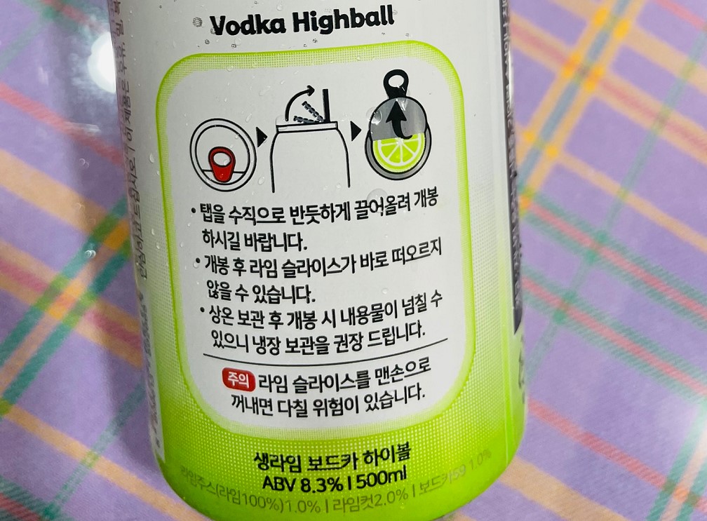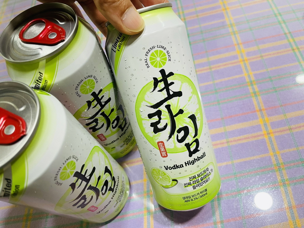 이전 버전인 생레몬 하이볼도 위스키에 탄산을 섞은 제품이 아니고 주정을 넣은 하이볼 제품이었어요. 하지만 이번에 새로 나온 생라임은 보드카를 넣은 하이볼이네요. 제조사에서는 이런 소비자의 목소리에 귀를 기울인 것 같네요.