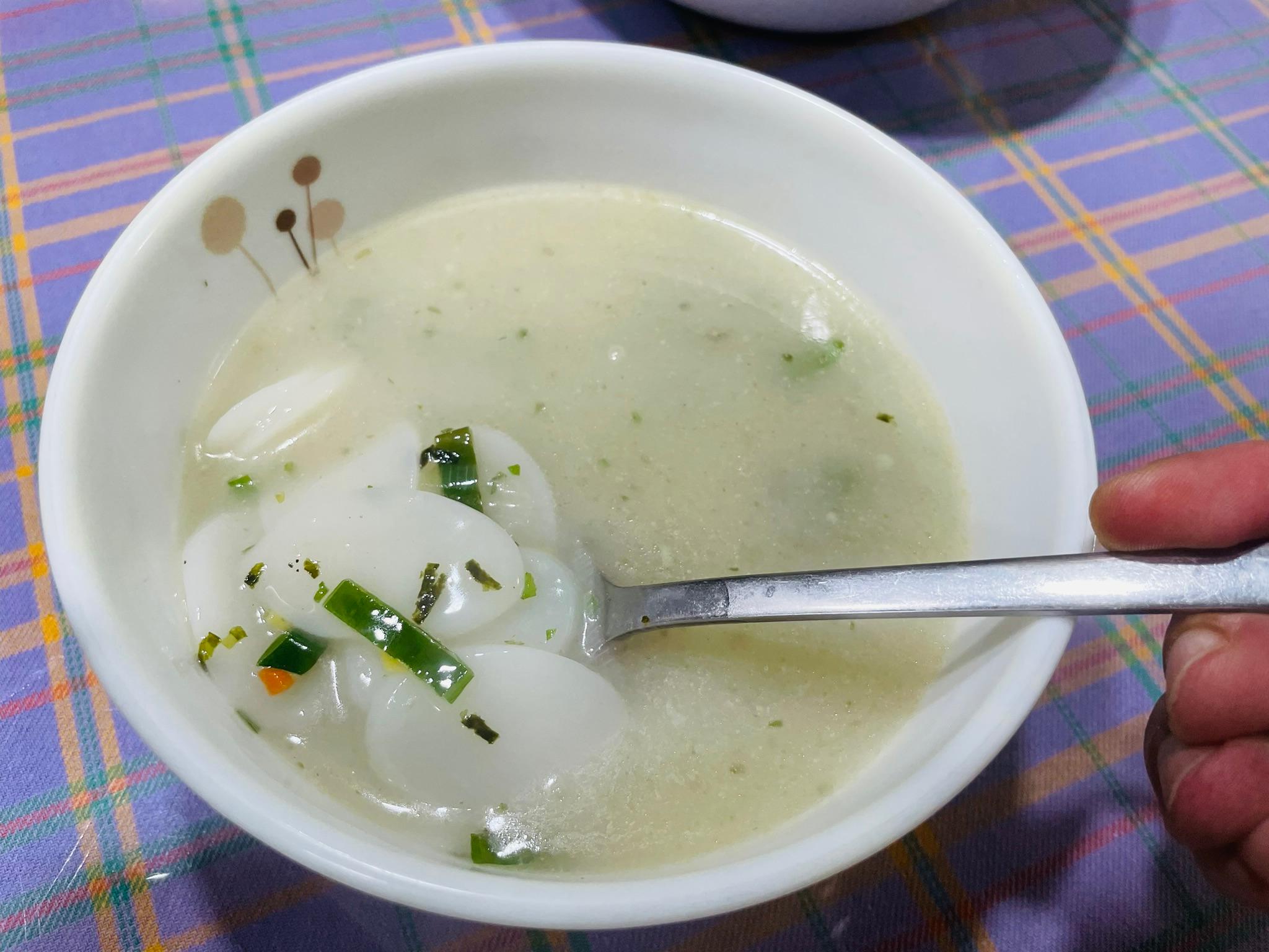 다 끓이고 나면 이렇게 국물밖에 안보이는데요. 떡이 가라앉아있어요.
