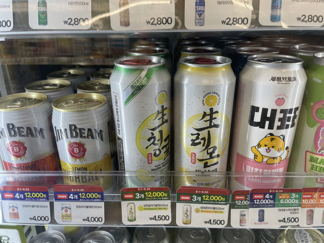 생청귤 모히토 하이볼 구하는 방법은 지난 생라임 리뷰에도 얘기한 것처럼 사람들의 유동이 적은 동네에서 술을 잘 안 드시게 생긴 분이 알바나 직접 운영하시는 CU편의점에서 구하기 쉬워요. 제가 구입한 편의점도 새벽시간 나이가 지긋하신 분이 매장정리를 하고 계시더라고요. 알바가 아닌 사장님 이신 것 같았어요. 제 개인적인 생각 이겠지만 사람 많은 아파트단지의 술 좋아하게 생긴 젊은 알바가 일하는 편의점은 역시 제품이 없었어요.