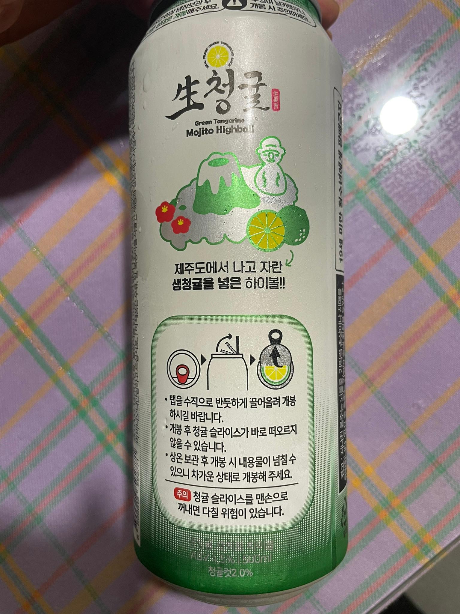 생청귤 모히토 하이볼은 제철과일 시즌한정판으로 나온 제품인데요. 청귤은 제주도가 원산지인 8월에서 9월까지만 나오는 제철과일이라고 해요. 새콤달콤한 맛이 특징이라서 청귤차를 많이 만들기도 해서 이런 맛을 특성으로 하이볼을 만들었네요.