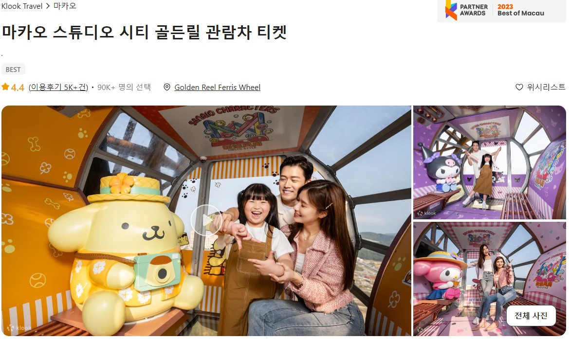 골든릴은 세계최초의 8자 모양의 대관람차 라고 해요. 지상130m 높이에서 8자모양으로 회전하는 대관람차인데요. 15분간 진행되는 대관람차 탑승 경험은 마카오 코타이 지역과 스튜디오 시티 리조트 주변의 멋진 경치를 감상할 수 있는 기회를 제공합니다.