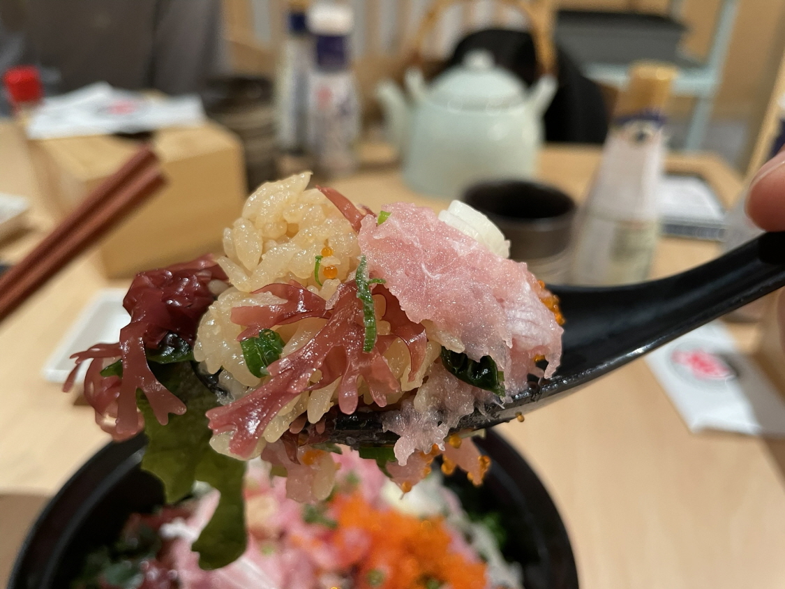 참치 덮밥(Tuna Donburi)인데요. 이건 좀 생소한 느낌이네요. 제가 일식을 잘 몰라서 그렇겠죠. 참치가 으깨진 회가 올라가 있고 고추장 양념이 아닌 소금이나 간장으로 간을 한 맛이에요. 맛이 나쁘진 않았어요.