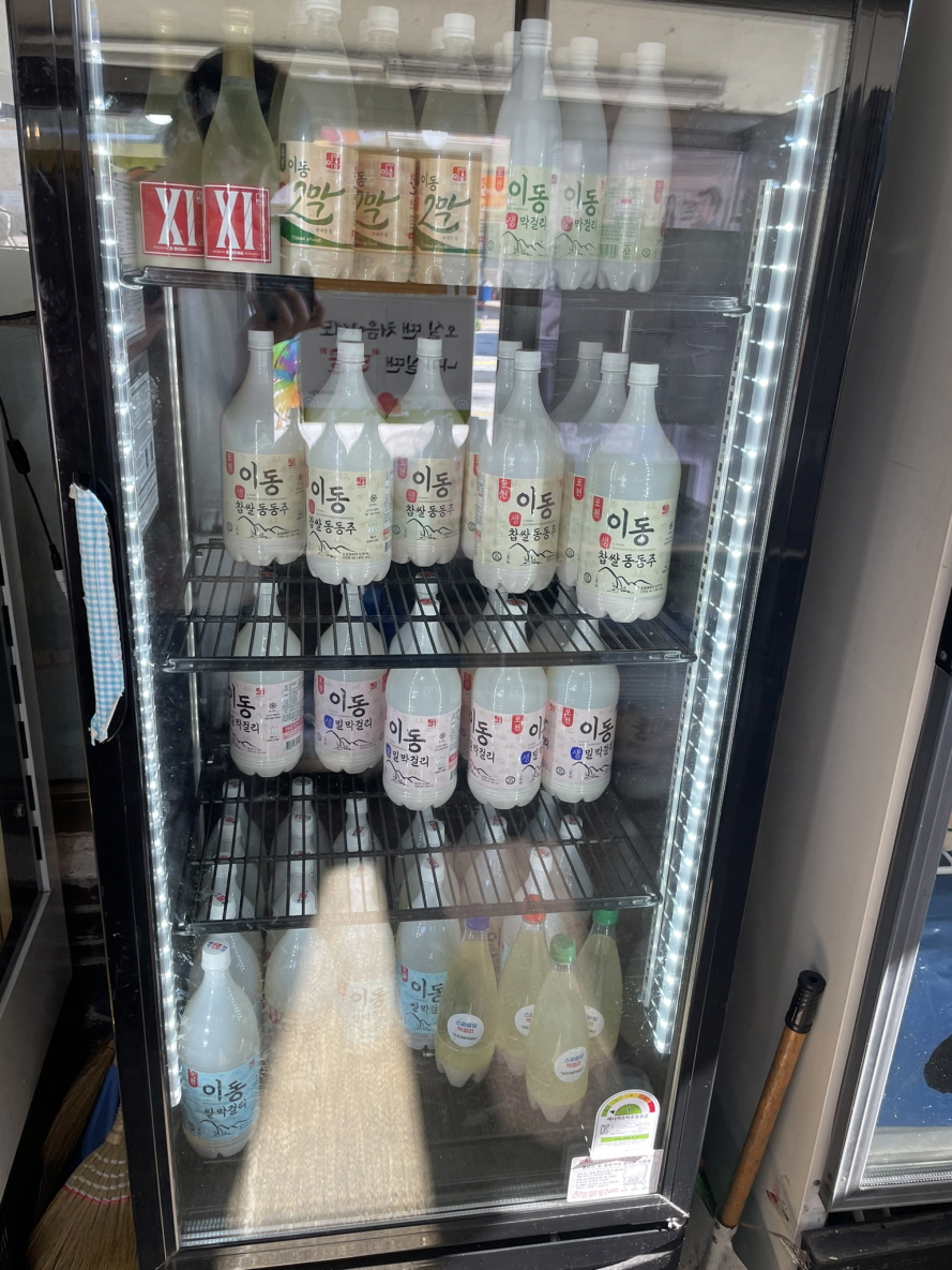 그래서 냉장고에 있는 것 중 국내산 쌀로 만든 막걸리를 사 왔어요.