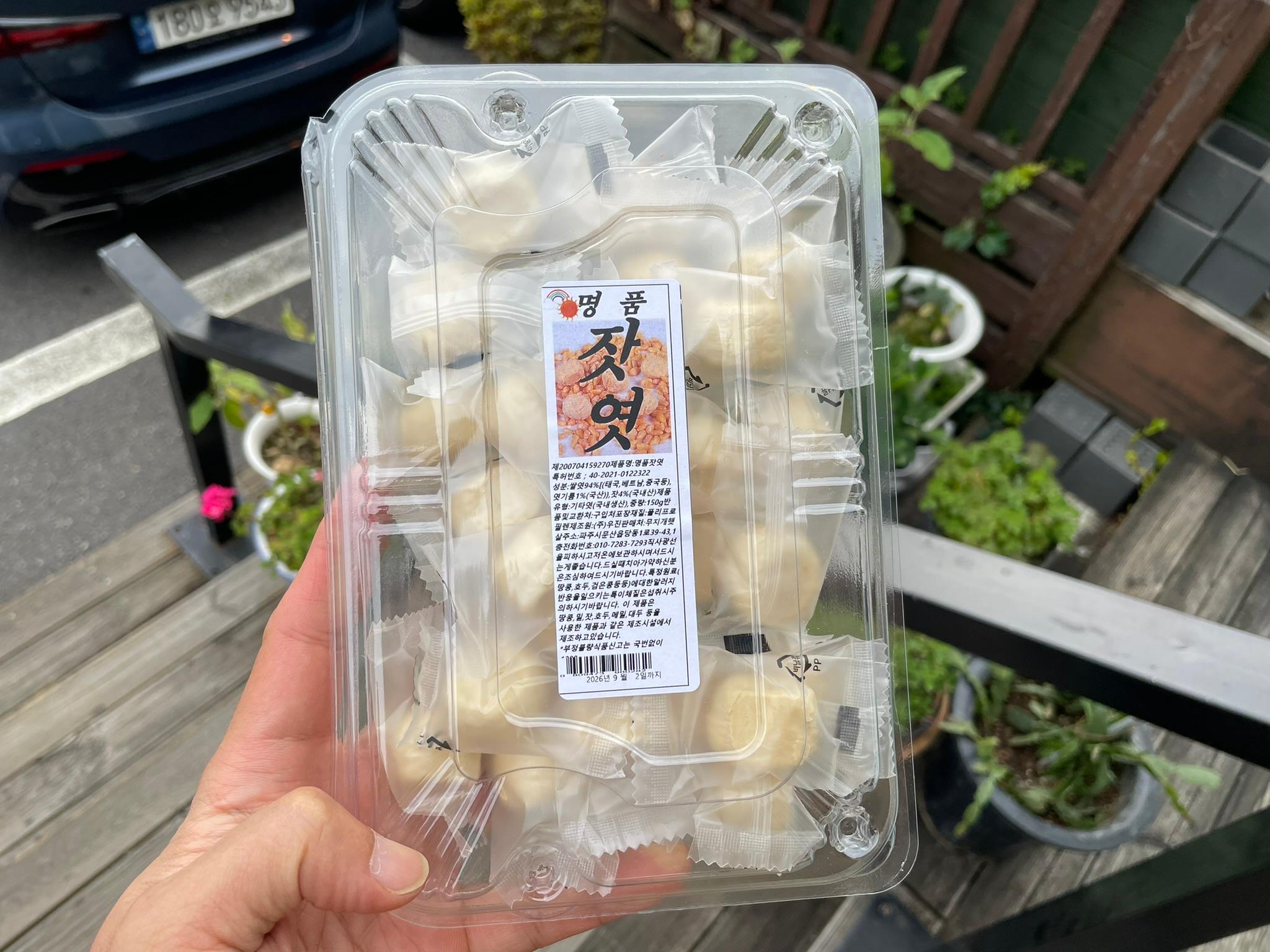 나가면서 잣엿 하나 사와서 집에 가는 길에 먹었어요. 고소한 잣 맛 엿이에요.