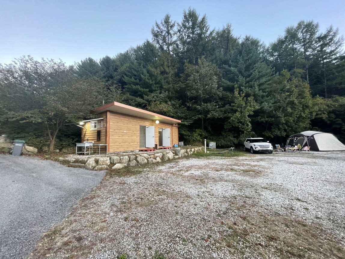5사이트가 동떨어져 있는 구역이라서 별도의 화장실과 개수대가 있어요. 사람이 많지 않아서 여유 있게 사용할 수 있었어요. 자리가 넓어서 너무 멀지도, 가깝지도 않은 적당한 거리의 화장실과 개수대입니다. 가을이니까 샤워는 패스~