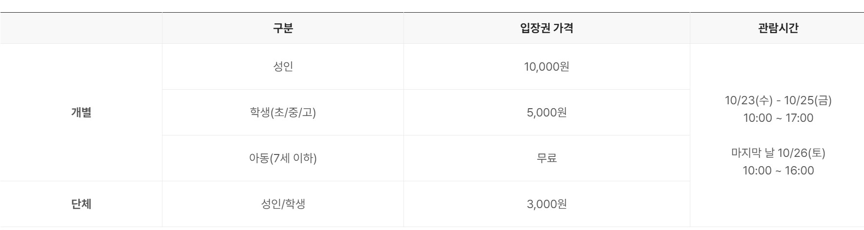 일정: 2024 10 23(수요일) ~ 26(토요일)