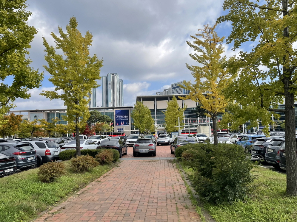 주차장에 들어가니 주차할 자리가 없어서 조금 헤맸어요. 로봇관련 관람과 정보를 얻으려는 사람이 많이 오셨네요. 첫날은 로봇산업에 관련된 업체와 관심 많은 어른분들이 많네요. 양복입은 회사원 분들과 로봇에 관심이 있는 분들이 명함을 주고받는 모습이 보입니다.