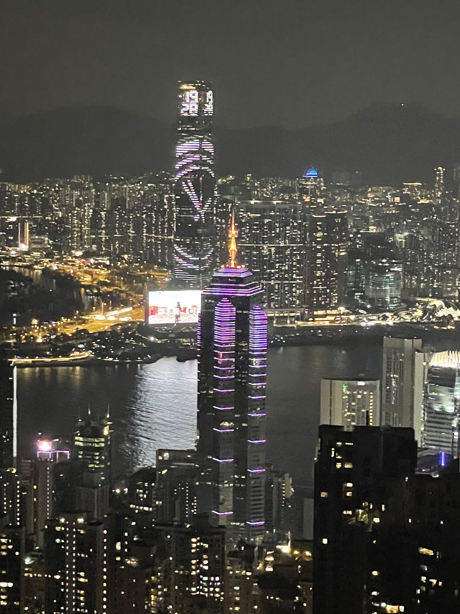 이 전망대에서는 홍콩의 주요 랜드마크들을 모두 감상할 수 있습니다. 센트럴(Central) 지역의 빌딩 숲, 빅토리아 항구를 지나 구룡반도(Kowloon Peninsula)까지 이어지는 전망이 한눈에 들어오며, 홍콩의 복잡한 도시와 주변 자연이 조화를 이루는 장관을 경험할 수 있습니다. 스타의 거리나 침사추이 해변에서 보는 야경과는 또 다른 느낌이네요. 스타의 거리에서 보는 야경은 아래서 보는 야경 이고요. 여기서 보는 야경은 위에서 내려다 보는 야경입니다. 한눈에 다 들어와요.