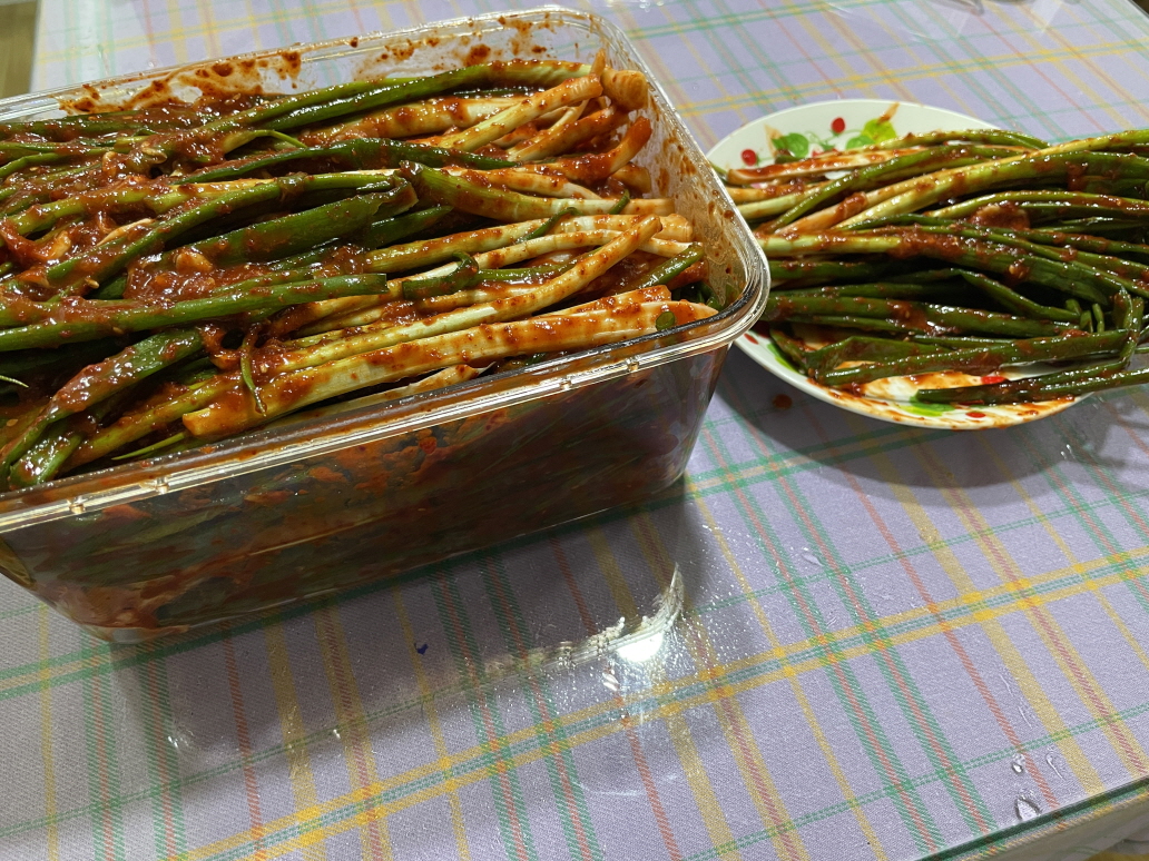저는 익은 김치를 좋아하는데 가족들은 안 익은 김치를 좋아하네요. 생 파 맛이 좋데요. 저는 바싹 익어서 축 처진 파김치가 좋아요. 라면이나 짜파게티 먹을 때 한 줄기씩 먹으면 정말 맛있거든요. 김장하기 전에 파김치 먼저 간단하게 담아봤어요.