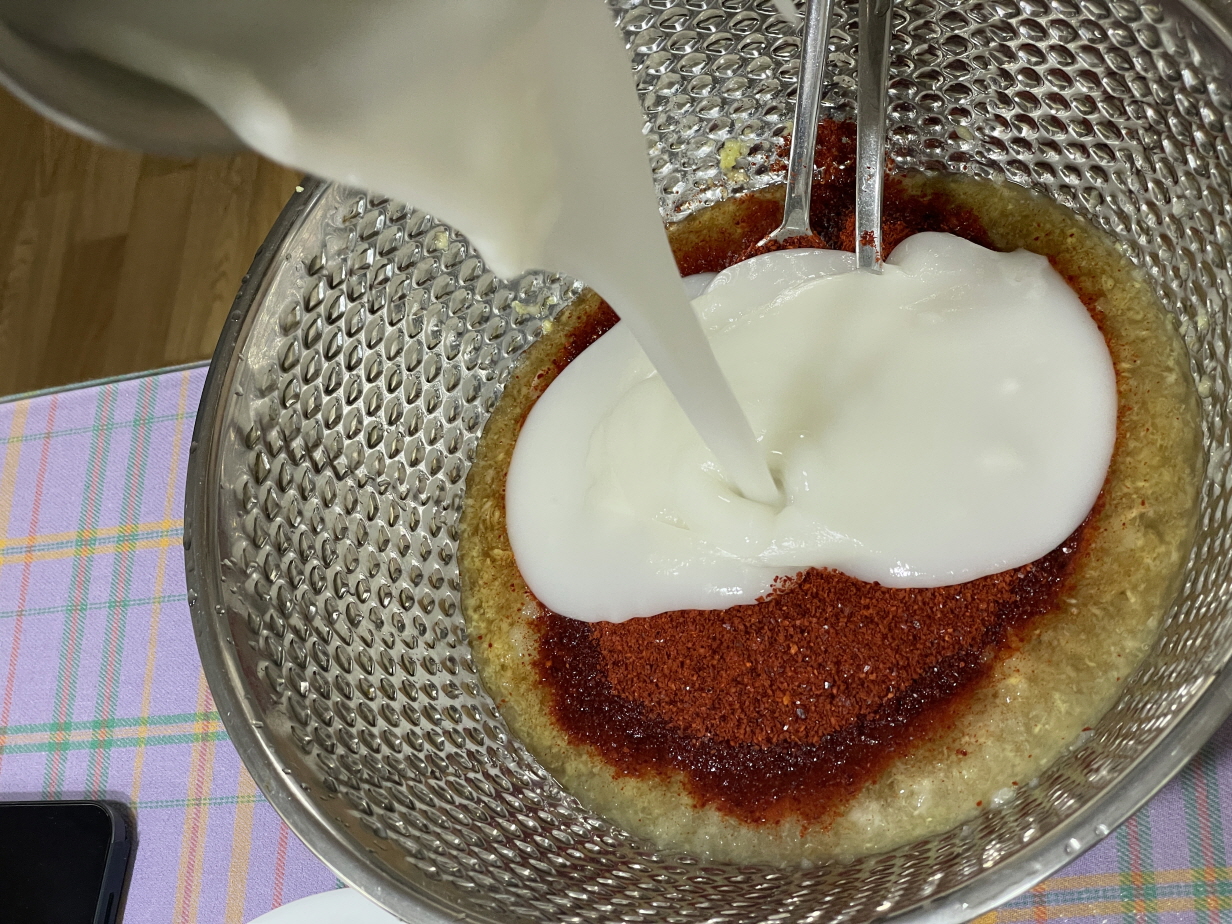 5 멸치액젓과 새우젓을 넣어요.