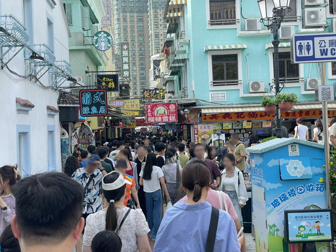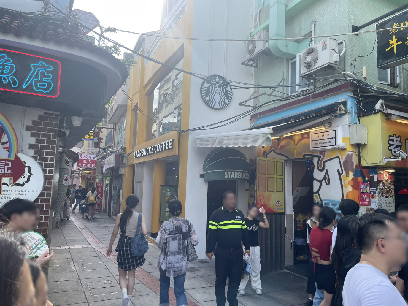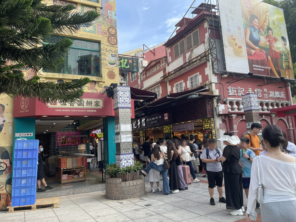 마카오의 타이파 빌리지는 마카오 본섬 남쪽에 위치한 타이파 섬(Taipa Island)에 있는 유서 깊은 마을로, 마카오의 전통적인 매력을 잘 간직한 곳이에요. 포르투갈의 식민지 시절의 흔적과 중국 전통문화가 어우러져 독특한 분위기를 느낄 수 있고, 역사와 문화, 그리고 정겨움이 한껏 느껴지는 거리입니다. 이런 이국적인 분위기가 유명해져서 외국인들이 많이 찾고 사진명소로도 유명해요. 사람 정말 많네요. 카페와 과자가게가 많아요.