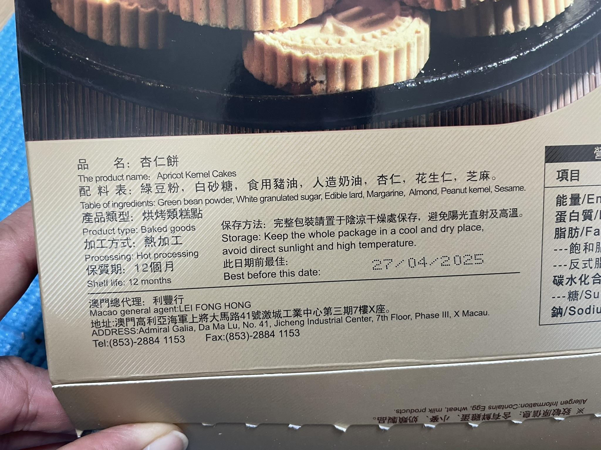 행인병이라고 하는 과자인데요. 마카오여행 갔다 오면 하나씩 사 오는 마카오 전통과자입니다. 선물용으로도 유명해요. 저희는 귀국하는 날 마카오 페리터미널에서 샀는데요. 아몬드가루와 살구씨 가루로 반죽해서 구운 쿠키라고 해요.