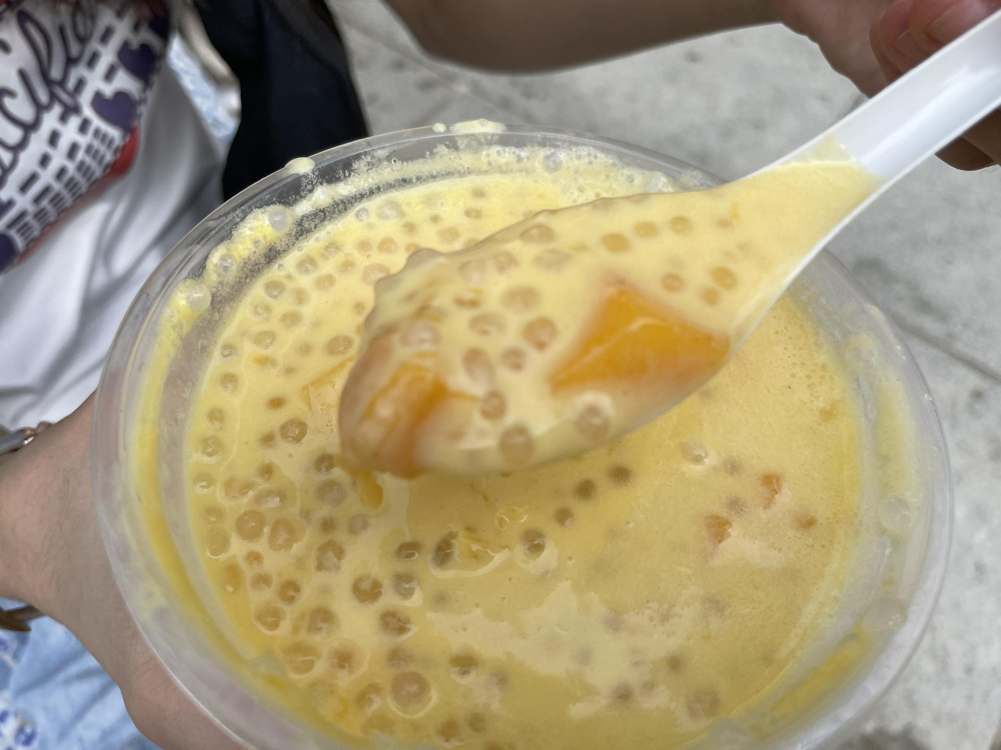 이게 생긴 건 이래도 정말 맛있거든요. 망고 과일의 풍미와 사고펄의 쫄깃함, 그리고 코코넛 밀크의 고소하고 부드러움이 어우러지는 맛이에요.