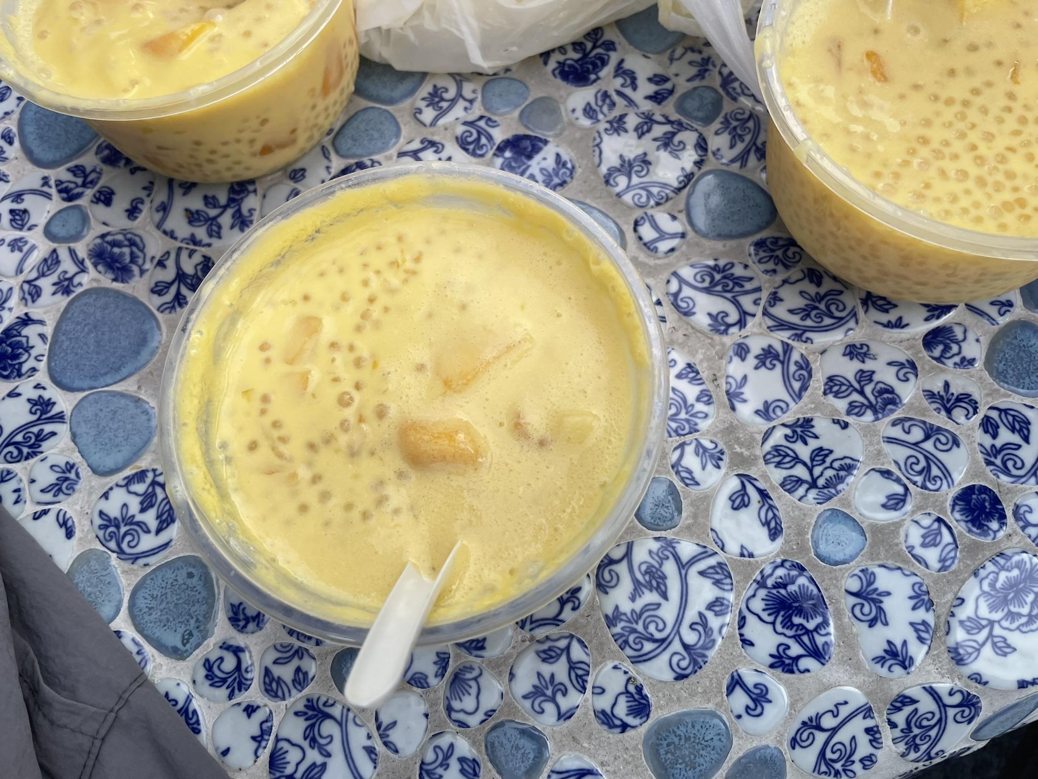 이게 생긴 건 이래도 정말 맛있거든요. 망고 과일의 풍미와 사고펄의 쫄깃함, 그리고 코코넛 밀크의 고소하고 부드러움이 어우러지는 맛이에요.