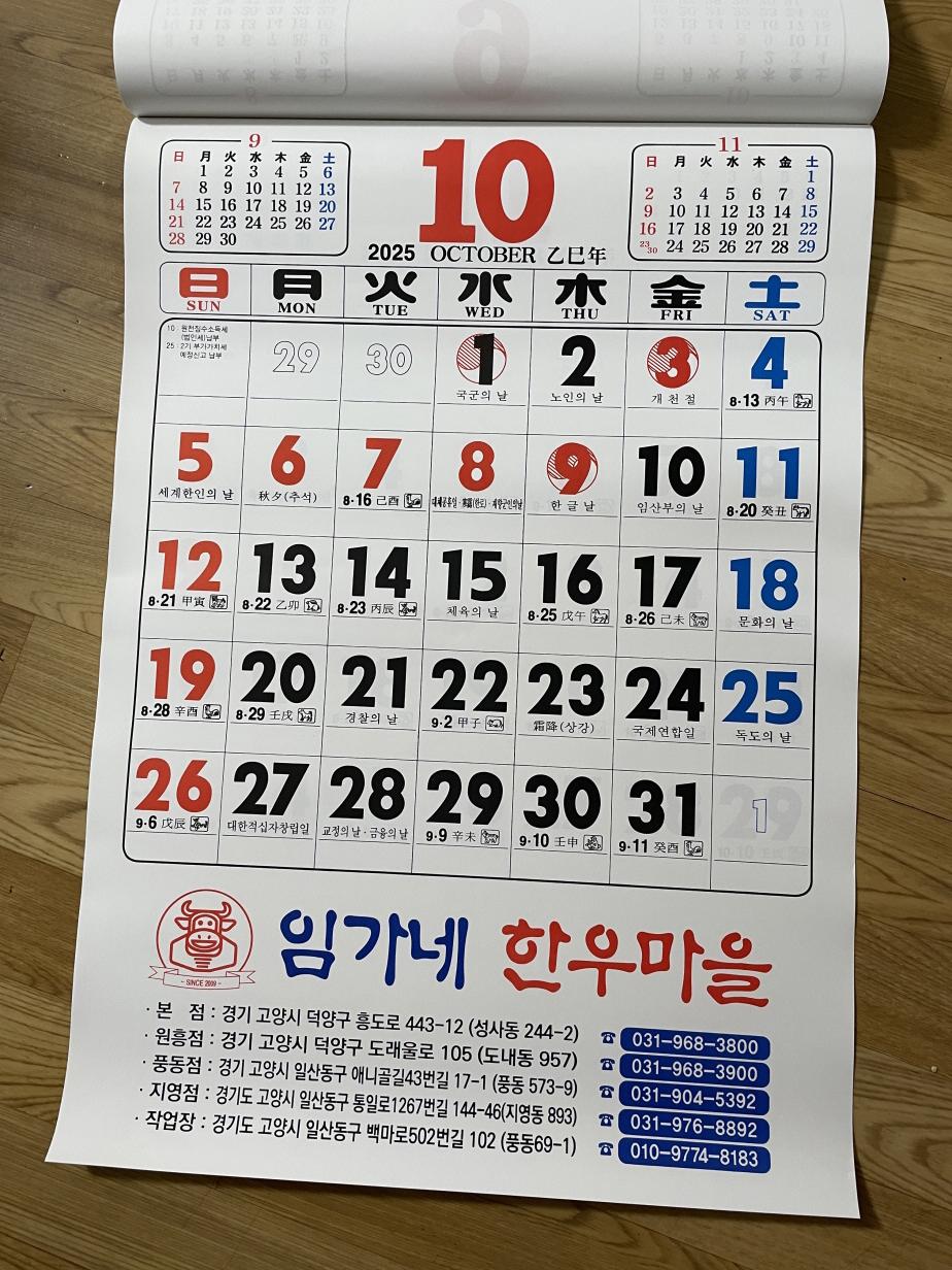 달력도 크고, 글씨도 큰 달력이에요. 어르신들이 좋아하시는 달력이에요. 이 달력이 제일 좋아요. 글씨 커서 작은 글씨는 잘 안보이시는 어른들께 선물해 드리면 좋아하셔요. 저희도 부모님 드리려고 두 개 챙겨 왔어요.