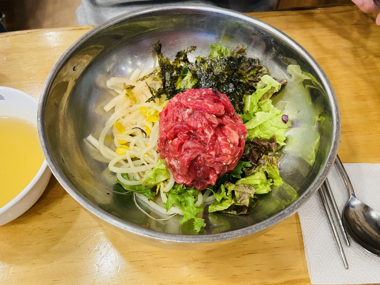 육회비빔밥과 갈비탕을 주문하였습니다. 갈비탕은 재료가 소진되면 금방 품절됩니다. 점심식사 시간에 품절되는 것 같아요.