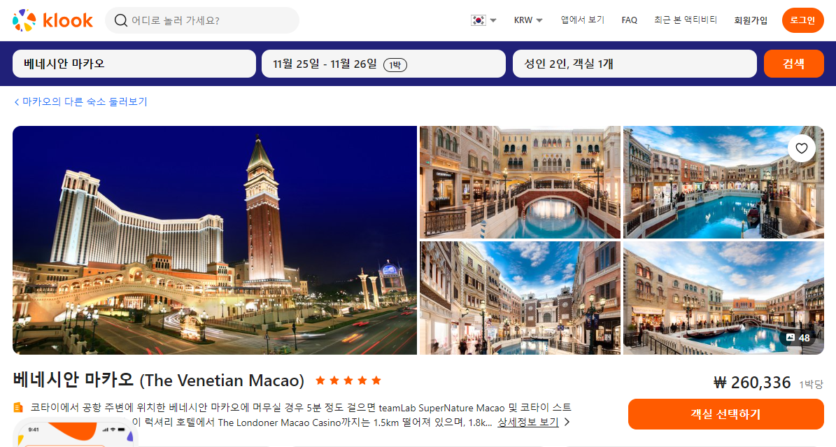 베네시안 리조트 곤돌라 체험 예약 바로가기(아래 링크)