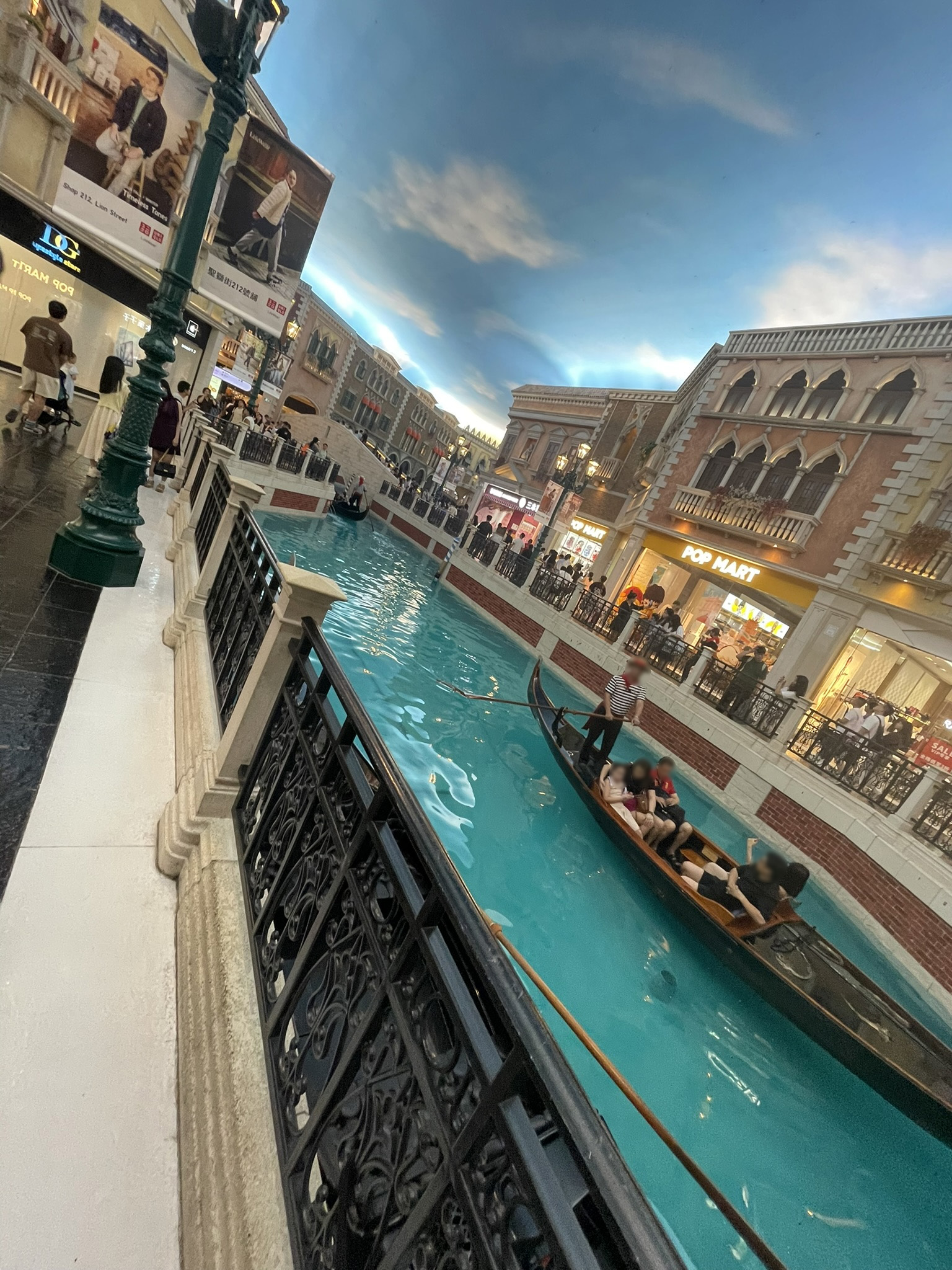 또한 베니치아 운하를 재현하여 그 위를 운행하는 곤돌라는 베네시안리조트를 대표하는 명물입니다. 운하 주변으로는 카페와 레스토랑, 쇼핑을 즐길 수 있는 매장이 있어요.
